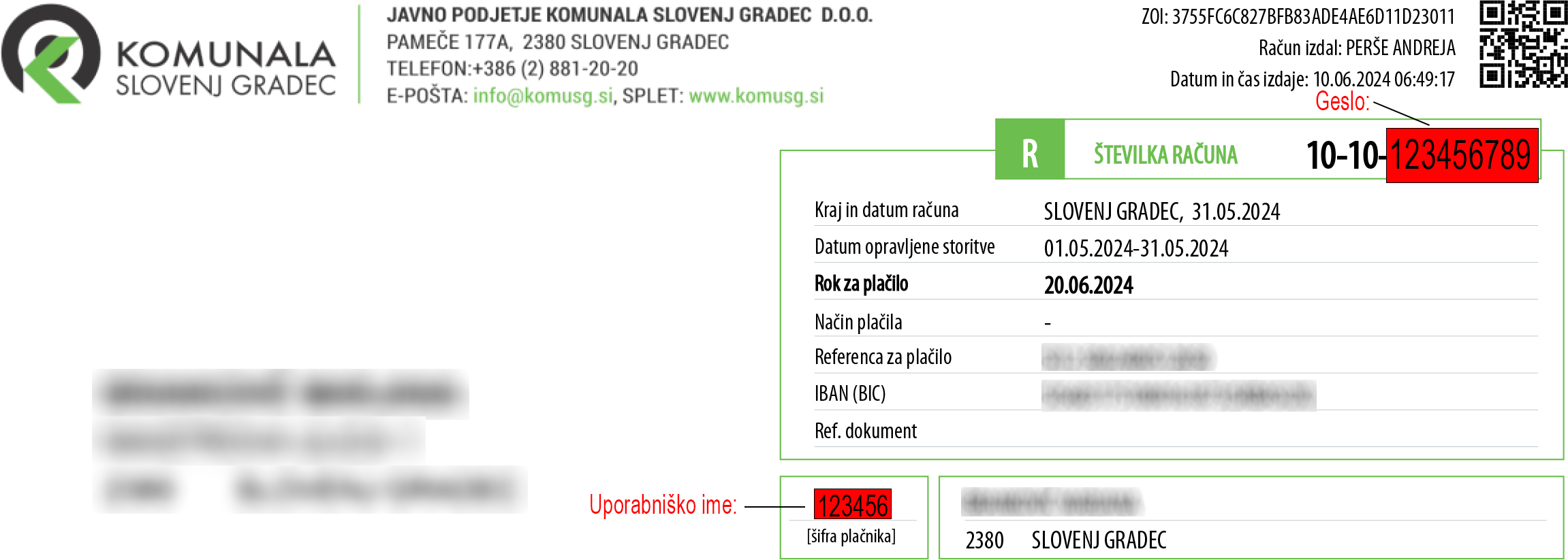 Za prvo prijavo v sistem potrebujete zadnji račun saj se prijavite tako, da za svoje uporabniško ime uporabite šifro kupca in pod geslo vpišete številko zadnjega prejetega računa za komunalne storitve (9-mestna številka).